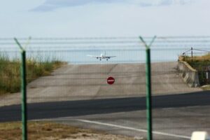 FILE PHOTO: A plane on route to Cuba from Lisbon safely performs an emergency landing at Humberto Delgado Airport after identifying a problem in the landing gear, in Lisbon, Portugal, June 18, 2022. REUTERS/Pedro Nunes/File Photo