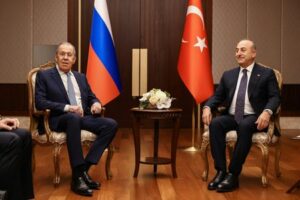 El ministro turco de Asuntos Exteriores, Mevlut Cavusoglu, se reúne con su homólogo ruso, Serguéi Lavrov, en Ankara, Turquía. 7 de abril de 2023. Ministerio de Asuntos Exteriores ruso/Handout vía REUTERS