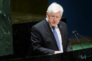 Permanent Representative of Canada to the UN Bob Rae speaks during a meeting of the U.N. General Assembly on the situation between Russia and Ukraine, at the United Nations Headquarters in Manhattan, New York City, U.S., February 23, 2022. REUTERS/Carlo Allegri