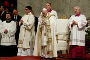 El papa Francisco preside la Vigilia Pascual en la Basílica de San Pedro del Vaticano. 8 de abril, 2023. REUTERS/Remo Casilli