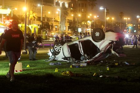TEL AVIV (Reuters) -An Italian tourist was killed and five people were wounded in a car ramming in Tel Aviv on Friday that came hours after two Israeli sisters were killed in a shooting attack in the occupied West Bank.