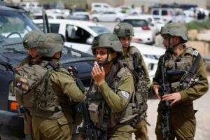 Israeli troops stand guard at a shooting attack scene in the Jordan Valley, in the Israeli-occupied West Bank April 7,2023. REUTERS/Mohammed Torokman