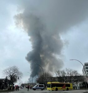 Heavy smoke rises during a major fire in Hamburg-Rothenburgsort April 9, 2023 April 9, 2023 Heavy smoke rises during a major fire in Hamburg-Rothenburgsort, Germany, April 9, 2023. REUTERS/Lutz Faupel