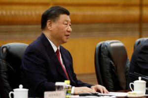 Chinese President Xi Jinping attends a meeting with French President Emmanuel Macron at the Great Hall of the People, in Beijing, China, April 6, 2023. REUTERS/Gonzalo Fuentes/Pool
