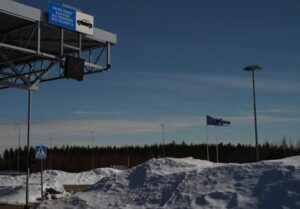 Las banderas finlandesa y de la Unión Europea ondean en el paso fronterizo entre Finlandia y Rusia, cuando Finlandia se convierte en miembro de la OTAN, en Vaalimaa, Finlandia, 4 de abril de 2023. REUTERS/Tom Little