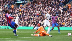 Soccer Football – Premier League – Leeds United v Crystal Palace – Elland Road, Leeds, Britain – April 9, 2023 Crystal Palace’s Eberechi Eze scores their third goal REUTERS/Carl Recine