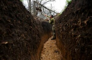 Un militar ucraniano limpia una trinchera en medio del ataque de Rusia a Ucrania en la lĂnea del frente cerca de Donetsk, Ucrania, 8 de abril de 2023. REUTERS/Kai Pfaffenbach