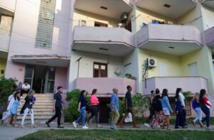 FILE PHOTO: People walk in line to the U.S. embassy April 10, 2023 April 10, 2023 FILE PHOTO: People walk in line to the U.S. embassy in Havana, Cuba, January 4, 2023. REUTERS/Alexandre Meneghini/File Photo