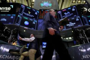 FILE PHOTO: Traders work on the floor of the New York Stock Exchange (NYSE) in New York City, U.S., March 16, 2023. REUTERS/Brendan McDermid/File Photo