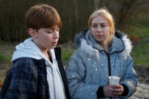 Alla Yatsentiuk looks at her 14-year-old son Danylo, who went to a Russian-organised summer camp from non-government controlled territories and was then taken to Russia, after returning via the Ukraine-Belarus border, in Volyn region, Ukraine April 7, 2023. REUTERS/Valentyn Ogirenko