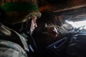 FOTO DE ARCHIVO. Un miembro del servicio ucraniano en una trinchera en una posición en la línea del frente, mientras continúa el ataque de Rusia contra Ucrania, cerca de la ciudad de Bajmut, Ucrania. 10 de abril de 2023. REUTERS/Oleksandr Klymenko