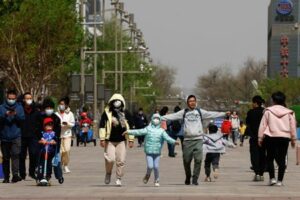 People walk against the wind amid a sandstorm in Beijing April 11, 2023 April 11, 2023 People walk against the wind amid a sandstorm in Beijing, China April 11, 2023. REUTERS/Tingshu Wang