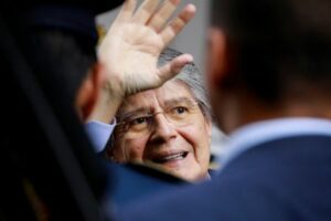 Ecuador’s President Guillermo Lasso gestures, on the day of his annual report to the nation, a week after dissolving the National Assembly and calling for early elections, in Quito, Ecuador, May 24, 2023. REUTERS/Karen Toro
