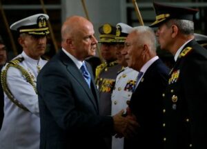 Ecuador’s Vice President Alfredo Borrero shakes hands with a military member, on the day of President Guillermo Lasso’s annual report to the nation, a week after President Lasso dissolved the National Assembly and called for early elections, in Quito, Ecuador, May 24, 2023. REUTERS/Karen Toro