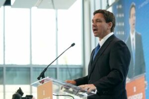 FILE PHOTO: Florida Governor Ron DeSantis delivers a speech at The Heritage Foundation’s 50th anniversary Leadership Summit at Gaylord National Resort and Convention Center in National Harbor, M.D., U.S., April 21, 2023. REUTERS/Sarah Silbiger/File Photo