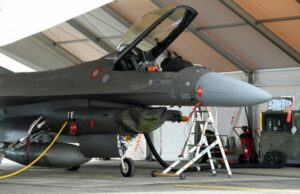FILE PHOTO: A Danish Air Force F-16 jet is pictured as Danish Defence Minister Morten Bodskov, not pictured, visits the airport in Ronne on the island of Bornholm, Denmark, on September 29, 2022. REUTERS/Fabian Bimmer