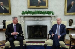 FOTO DE ARCHIVO: El presidente estadounidense, Joe Biden (derecha), junto al presidente de la Cámara de Representantes, el republicano Kevin McCarthy, en el interior de la Casa Blanca en Washington, Estados Unidos, el 22 de mayo de 2023. REUTERS/Leah Millis