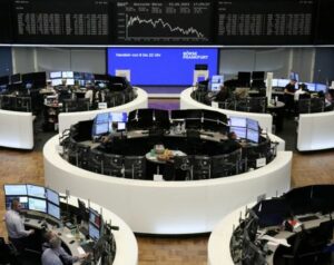 FOTO DE ARCHIVO. Un gráfico del índice de acciones alemanas DAX se ve en una pantalla en la bolsa de Fráncfort, Alemania. 23 de mayo de 2023. REUTERS/Staff
