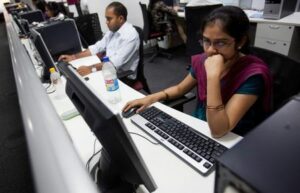 FILE PHOTO: Workers are seen at their workstations on the floor of an outsourcing centre in Bangalore, February 29, 2012/File Photo