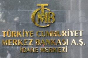 A logo of Turkey’s Central Bank is pictured at the entrance of its headquarters in Ankara, Turkey October 15, 2021. REUTERS/Cagla Gurdogan