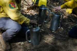 Drip torches are prepared for starting a broadcast burn, as volunteers learn burning techniques in advance of wildfire season, near Blodgett Forest Research Station in Georgetown, California, U.S., May 20, 2023. REUTERS/Loren Elliott