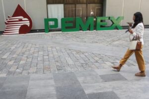 FOTO DE ARCHIVO. Una empleada camina junto al logotipo de Petróleos Mexicanos en la sede de la petrolera estatal Pemex en Ciudad de México, México, 7 de marzo de 2023. REUTERS/Gustavo Graf
