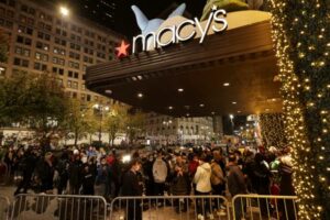 FILE PHOTO: People wait in line at Macy’s before Black Friday sales in the Manhattan borough of New York City, New York, U.S., November 26, 2021. REUTERS/Jeenah Moon