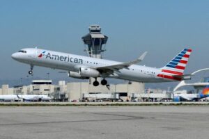 FILE PHOTO: An American Airlines Airbus A321-200 plane takes off from Los Angeles International airport (LAX) in Los Angeles, California, U.S. March 28, 2018. REUTERS/Mike Blake