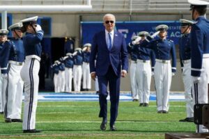 U.S. President Joe Biden attends the graduation ceremony at the Air Force Academy in Colorado Springs, Colorado, U.S., June 1, 2023. REUTERS/Kevin Lamarque