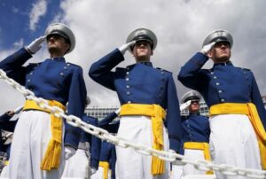 Cadets attend their graduation ceremony at the Air Force Academy in Colorado Springs, Colorado, U.S. June 1, 2023. REUTERS/Kevin Lamarque
