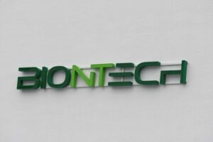 ARCHIV: Das Logo von BioNTech in Marburg, Deutschland