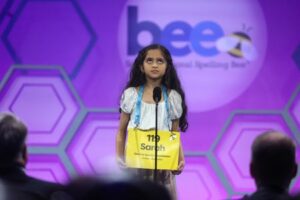 Sarah Fernandes, 11, competes in the final round of the Scripps National Spelling Bee competition in National Harbor, Maryland U.S., June 1, 2023. REUTERS/Leah Millis