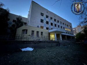 The view shows a local clinic, which was heavily damaged during a Russian missile strike, amid Russia’s attack on Ukraine, in Kyiv, Ukraine, June 1, 2023. Kyiv City Military Administration/Handout via REUTERS