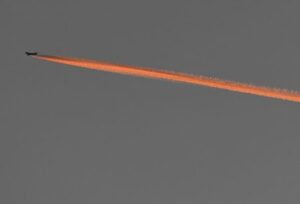 FILE PHOTO: The setting sun illuminates an aircraft’s contrail as it flies, as viewed from Glastonbury, Britain, January 17, 2022. REUTERS/Toby Melville/File Photo