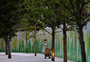Coronavirus disease (COVID-19) outbreak in Tokyo June 2, 2023 June 2, 2023 A woman pushes a stroller outside the National Stadium in Tokyo, Japan, July 28, 2021. REUTERS/Kim Kyung-Hoon/File Photo