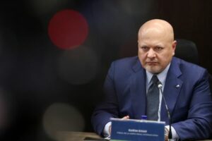 El fiscal de la CPI Karim Khan habla durante una rueda de prensa en el tribunal de la Jurisdicción Especial para la Paz en Bogotá, Colombia, 6 de junio, 2023. REUTERS/Luisa González