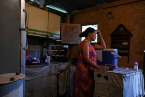 FOTO DE ARCHIVO REFERENCIAL. Gladys se inclina sobre un recipiente de plástico que llena diariamente con agua a través de un sistema de tuberías hecho por la comunidad en el barrio de bajos ingresos de Petare, en Caracas, Venezuela, el 12 de mayo de 2023. REUTERS/Gaby Oraa