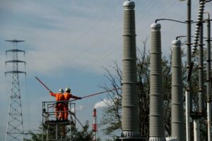 FOTO DE ARCHIVO: Hombres trabajan en una torre de transmisión en Kakogawa, prefectura de Hyogo, Japón, 13 de noviembre de 2017. REUTERS/Kim Kyung-Hoon