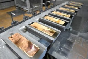 FOTO DE ARCHIVO: Lingotes de oro puro al 99,99 por ciento se colocan en una sala de trabajo en la planta de metales preciosos Krastsvetmet en la ciudad siberiana de Krasnoyarsk, Rusia. 31 de enero, 2023. REUTERS/Alexander Manzyuk