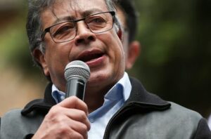 Colombia’s President Gustavo Petro speaks as people attend a march in support of his government’s proposed health, retirement, employment and prison reforms in Bogota, Colombia, June 7, 2023. REUTERS/Luisa Gonzalez