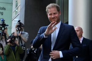 Britain’s Prince Harry, Duke of Sussex, waves as he departs the Rolls Building of the High Court in London, Britain June 7, 2023. REUTERS/Toby Melville