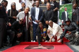 Sekyiwa ‘Set’ Shakur posa durante la ceremonia de descubrimiento de la estrella póstuma del rapero Tupac Shakur en el Paseo de la Fama de Hollywood, en Los Ángeles, California, Estados Unidos, el 7 de junio, 2023. REUTERS/Mario Anzuoni