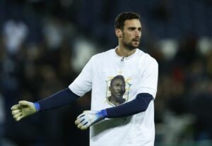 FOTO DE ARCHIVO: El portero español Sergio Rico durante el calentamiento previo al partido de liga de fútbol francesa disputado entre el Paris Saint-Germain y el Angers en el estadio Parque de los Príncipes de París, Francia, el 11 de enero de 2023. REUTERS/Gonzalo Fuentes