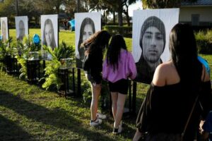 FILE PHOTO: People attend a memorial service on the five-year anniversary since gunman Nikolas Cruz opened fire at Marjory Stoneman Douglas High School killing 14 students and three staff members, in Parkland, Florida, U.S., February 14, 2023. REUTERS/Marco Bello/File Photo