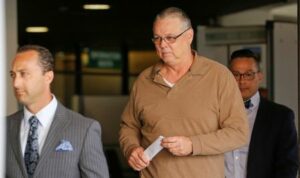 FILE PHOTO: Former Broward County Sheriff’s deputy Scot Peterson (C) leaves Broward County Jail with his attorneys Joseph DiRuzzo (R) and David Sobel after his release on charges stemming from his response during 2018 mass shooting at Marjory Stoneman Douglas High School, in Fort Lauderdale, Florida, U.S., June 6, 2019. REUTERS/Joe Skipper/File Photo