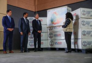 El secretario de Estado de EEUU, Antony Blinken, visita un almacén del Centro Logístico de la ONU acompañado por el director de la misión USAID/Etiopía, Sean Jones, y el ministro etíope de Finanzas, Ahmed Shide, en Adís Abeba, Etiopía, el 15 de marzo de 2023. REUTERS/Tiksa Negeri/Pool/File Photo