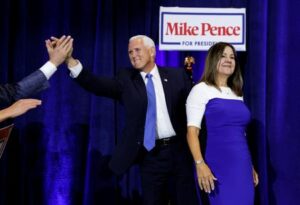 Former U.S. Vice President Mike Pence is greeted by supporters as he arrives with his wife Karen to make a U.S. presidential campaign announcement kicking off his race for the 2024 Republican presidential nomination at a Future Farmers of America “enrichment center” in Ankeny, Iowa, U.S. June 7, 2023. REUTERS/Jonathan Ernst