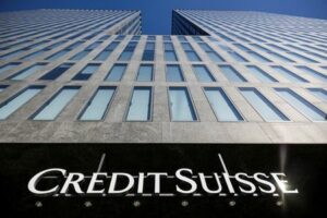 FILE PHOTO: The logo of Credit Suisse is pictured on a building in Zurich, Switzerland, April 4, 2023. REUTERS/Pierre Albouy/File Photo