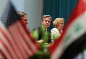 U.S. Secretary of State Antony Blinken attends a meeting with Iraqi Foreign Minister Fuad Hussein(not seen) in Riyadh, Saudi Arabia, June 8, 2023. REUTERS/Ahmed Yosri/Pool