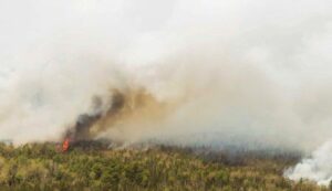 View of the Barrington Lake wildfire, Nova Scotia, Canada in this social media handout image released May 31, 2023. Nova Scotia Government/Handout via REUTERS